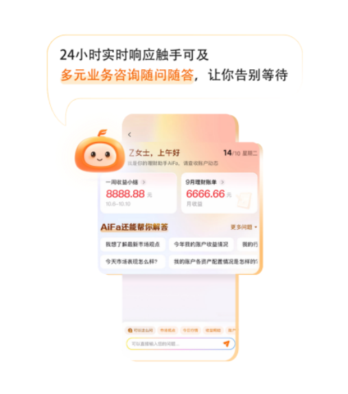 广发基金相关业务负责人表示,作为一个智能体,“AiFa”并不是传统的应用程序,而是利用前沿AI技术构建的全新理财助理以“须臾不离,深切相知”为初心,在广发基金App为投资者提供更加便捷、智能化的线上理财服务体验。