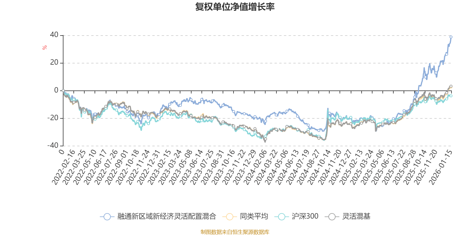 截至1月15日,融通新区域新经济灵活配置混合近三个月复权单位净值增长率为23.69%,位于同类可比基金50/1286;近半年复权单位净值增长率为67.55%,位于同类可比基金45/1286;近一年复权单位净值增长率为78.53%,位于同类可比基金87/1286;近三年复权单位净值增长率为55.89%,位于同类可比基金148/1286。