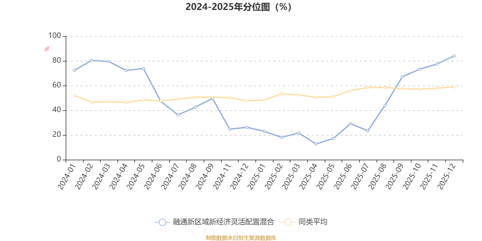 通过所选区间该基金净值增长率分位图,可以观察该基金与同类基金业绩比较情况。图为坐标原点到区间内某时点的净值增长率在同类基金中的分位数。