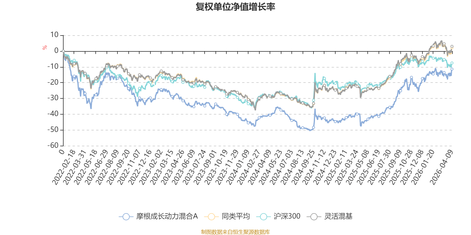 截至4月9日,摩根成长动力混合A近三个月复权单位净值增长率为2.42%,位于同类可比基金312/1287;近半年复权单位净值增长率为7.37%,位于同类可比基金319/1286;近一年复权单位净值增长率为68.26%,位于同类可比基金196/1286;近三年复权单位净值增长率为22.72%,位于同类可比基金448/1286。