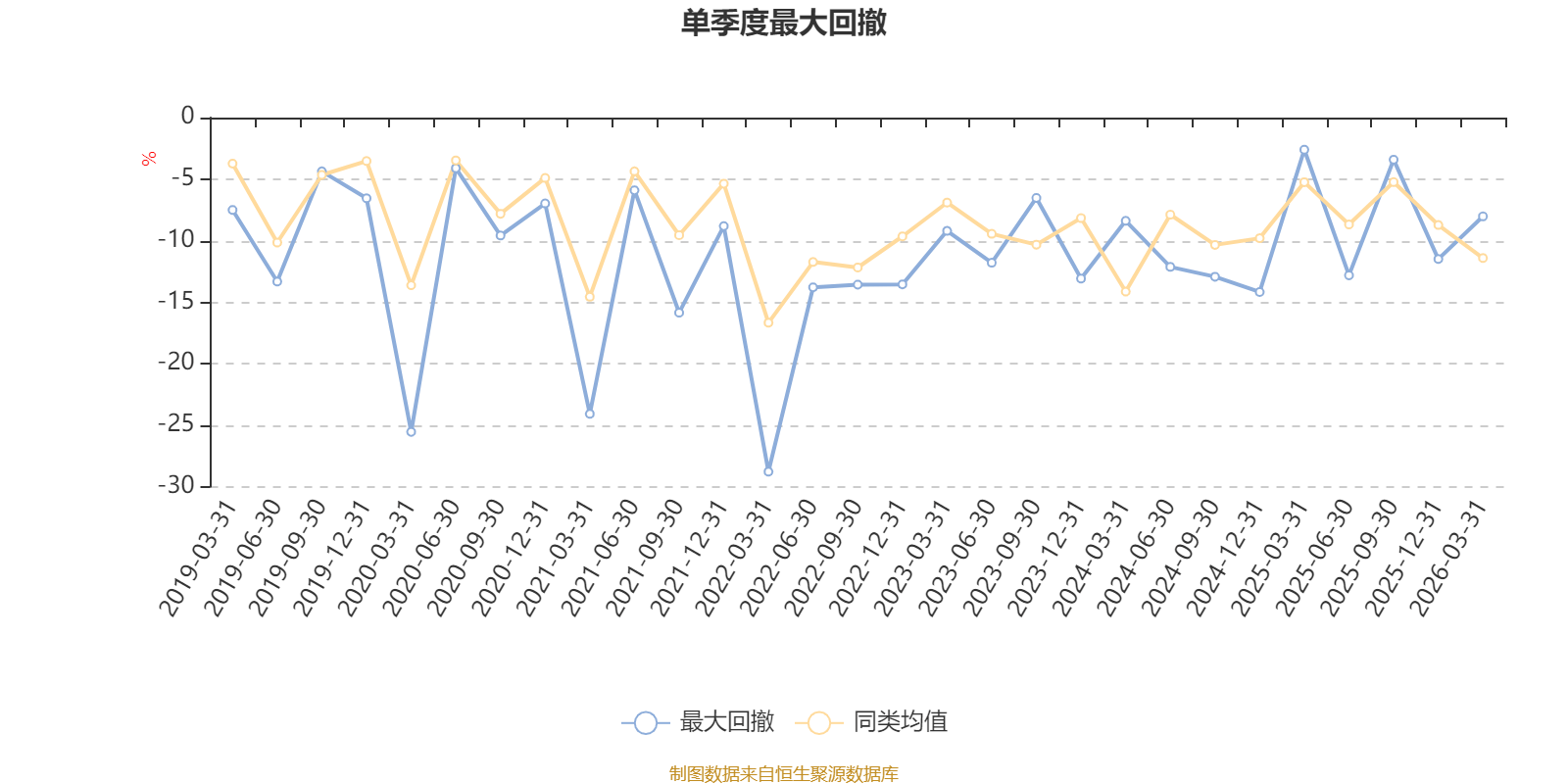 截至4月9日,基金近三年最大回撤为31.26%,同类可比基金排名646/1264。单季度最大回撤出现在2022年一季度,为28.79%。
